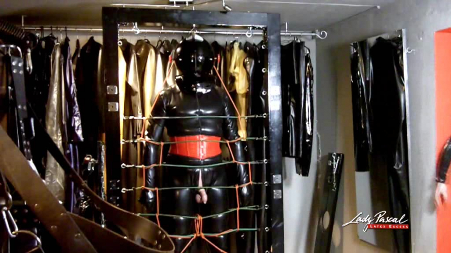 Erlebt, wie mein Proband sorgfältig von mir gefesselt wird, anschliessend bekommt er einen Stahl-Helm von mir aufgesetzt, der innen mit Latex ausgekleidet ist. Im Ohrenbereich sind dicke Polster, die ich von aussen festschrauben kann, sodass der Kiefer zusammen gepresst wird. Nachdem der Helm abgeschlossen ist, wird er zusätzlich noch von aussen fixiert. Keine leichte Angelegenheit...