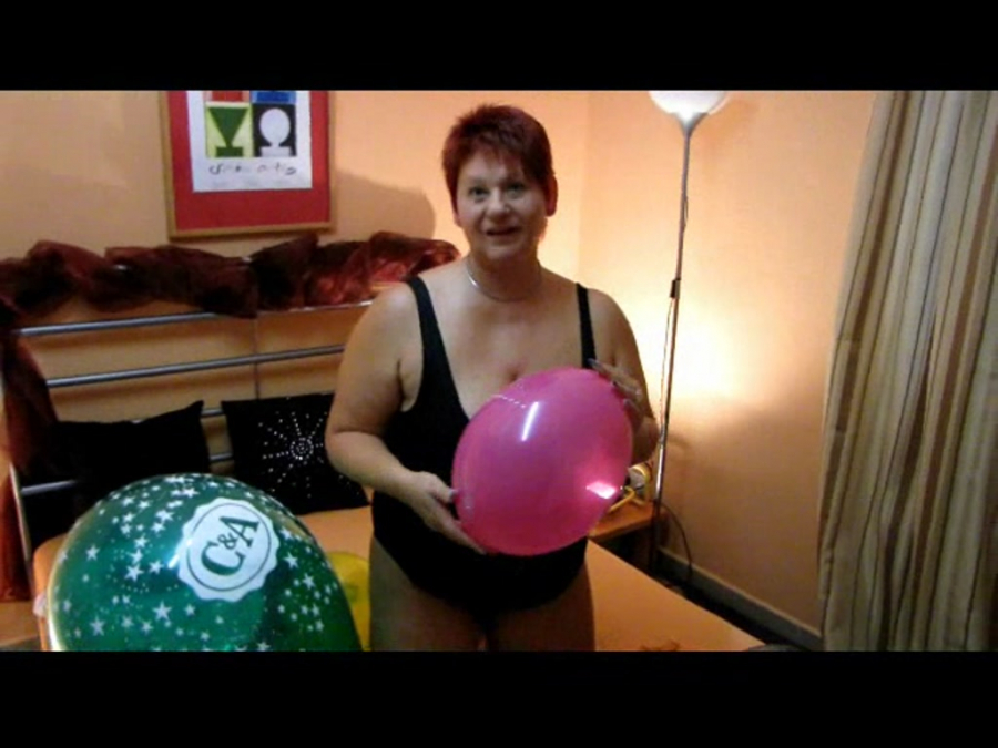 ... Anna wearing only a bathing suit and contented herself with a lot of balloons. One burst when inflated in front of her face, and before her big breasts. It pops quite severe and will immediately blushed. Then she still rides on a big green balloon.